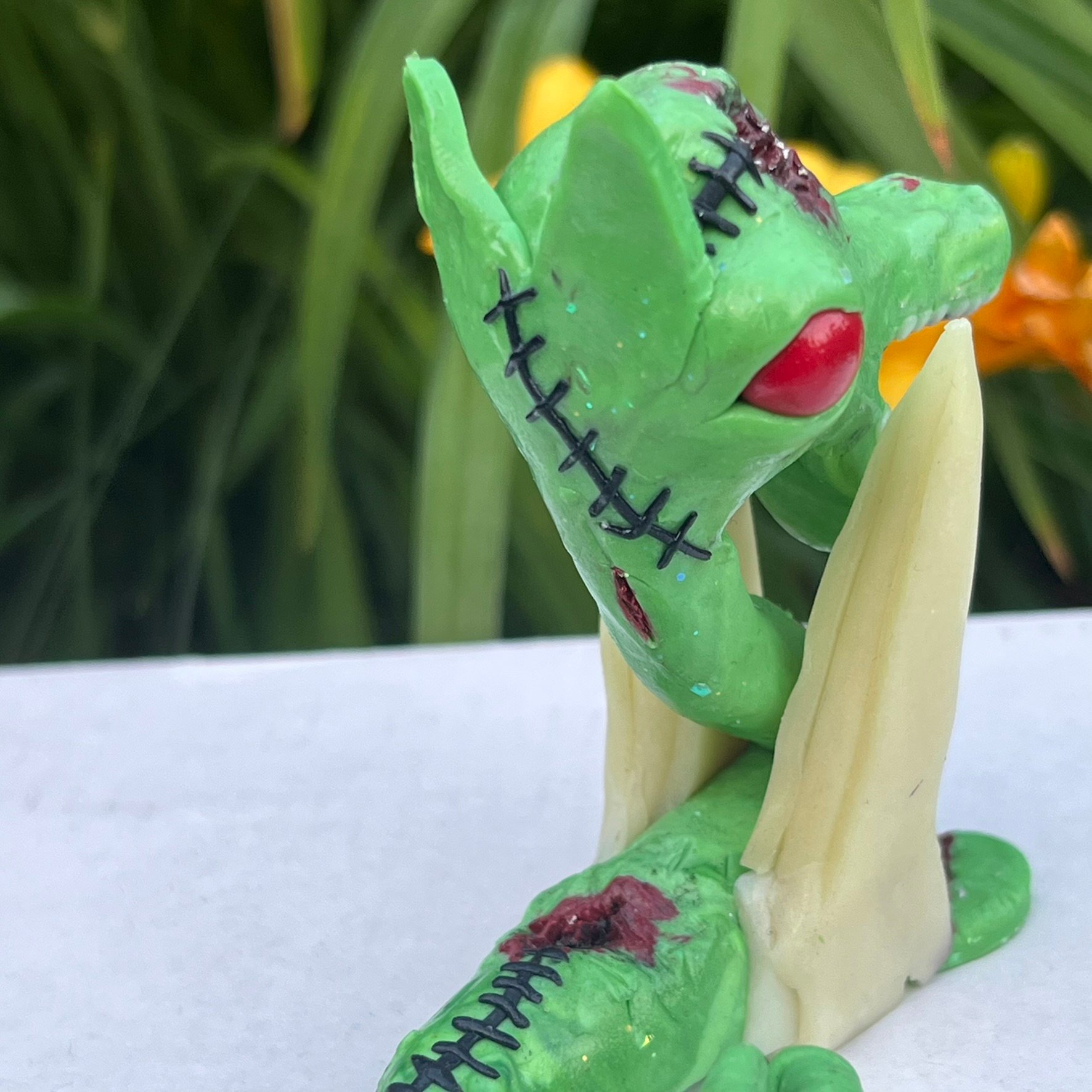 They are made using oven-bake polymer clay with a tinfoil and wire armature ("skeleton") underneath. The pieces are all waterproof and weather resistant, making them perfect for indoor or outdoor display! Just be sure they stay out of reach of small children or animals who may knock them over or mistake them as toys, because while they are durable and aren't easily broken accidentally, they are still fragile and must be handle with care <3