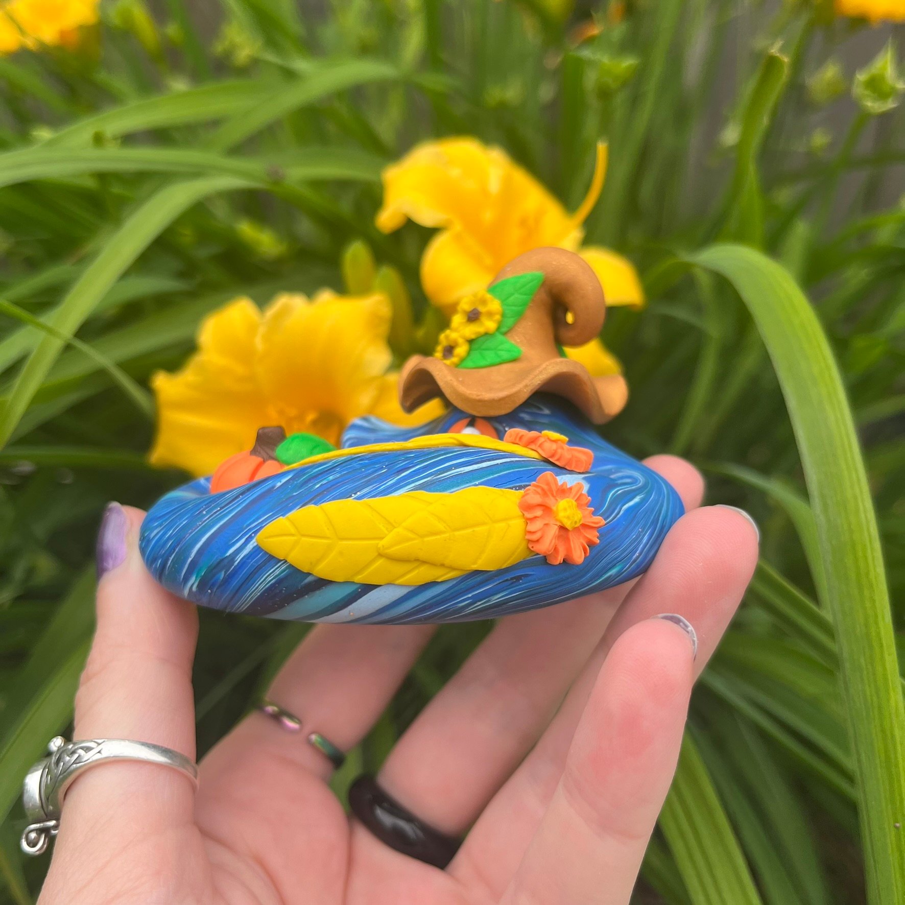 They are made using oven-bake polymer clay with a tinfoil and wire armature ("skeleton") underneath and occasionally contain details made from other materials including: crystals, stones, beach glass, wire, and other accessories. The pieces are all waterproof and weather resistant, making them perfect for indoor or outdoor display! Just be sure they stay out of reach of small children or animals who may knock them over or mistake them as toys, because while they are durable and aren't easily broken accidentally, they are still fragile and must be handle with care <3
